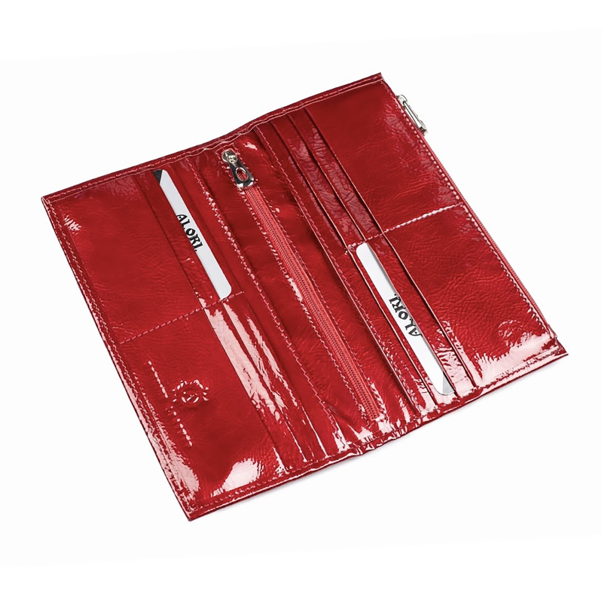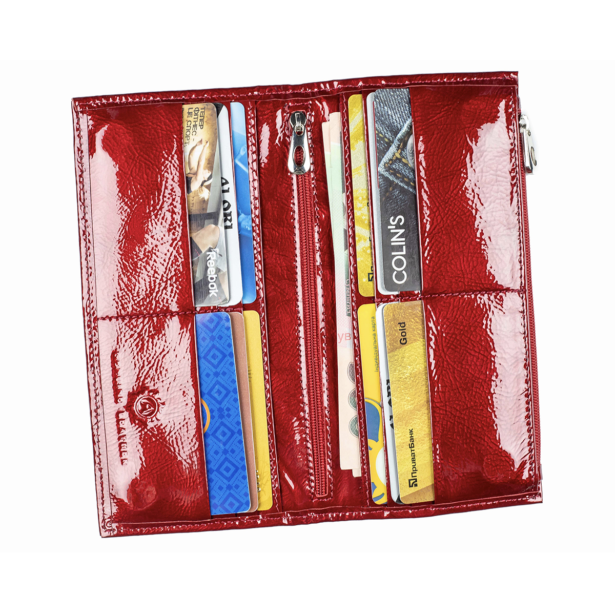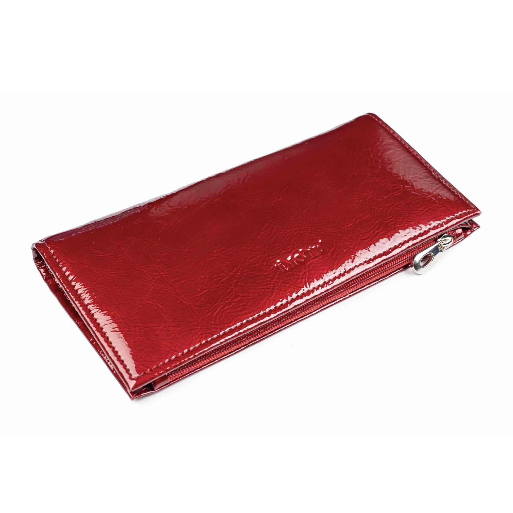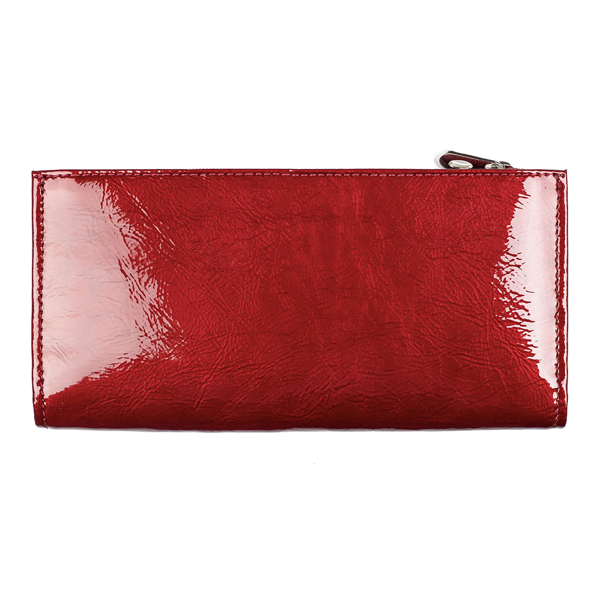 Гаманець виконаний з натуральної гладкої лакової шкіри червоного кольору з 3D ефектом.