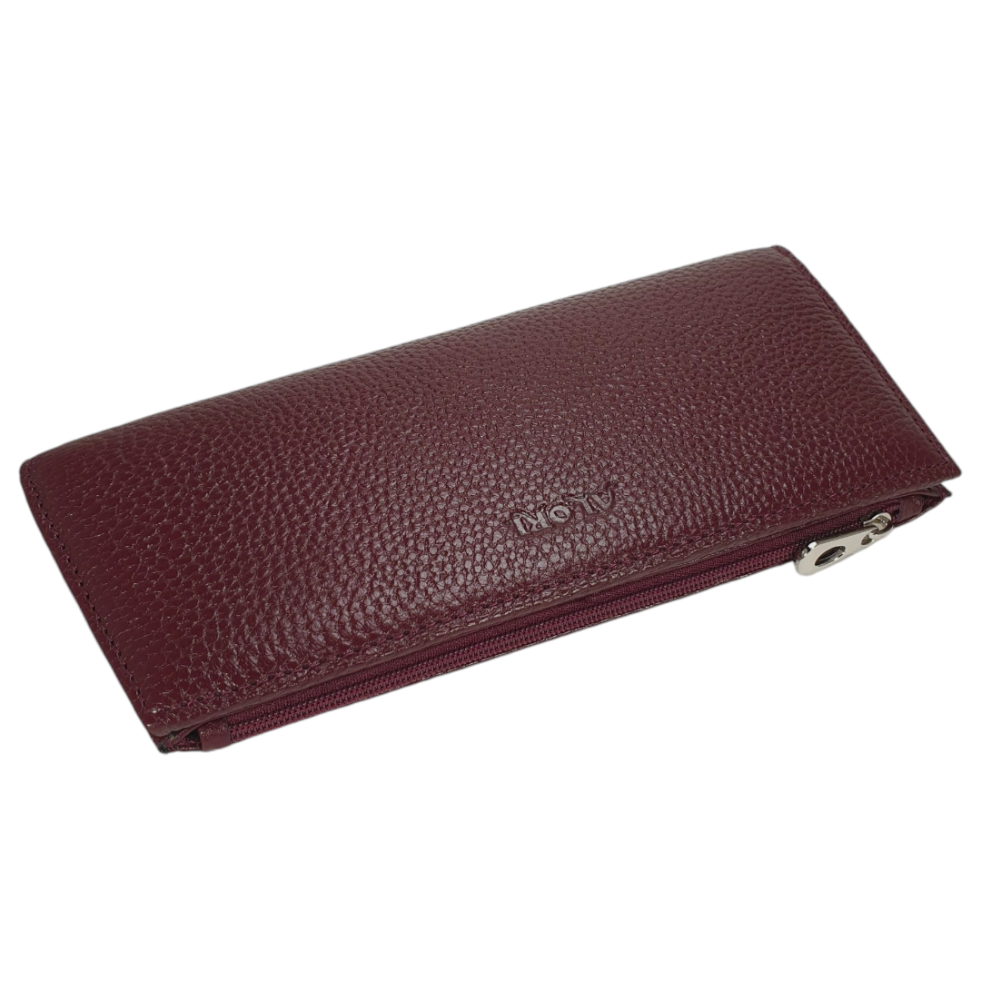 Гаманець виконаний із натуральної шкіри флотар бордового кольору.