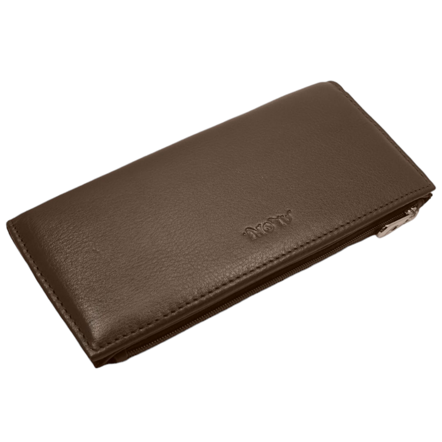 Гаманець виконаний з натуральної гладкої шкіри коричневого кольору.