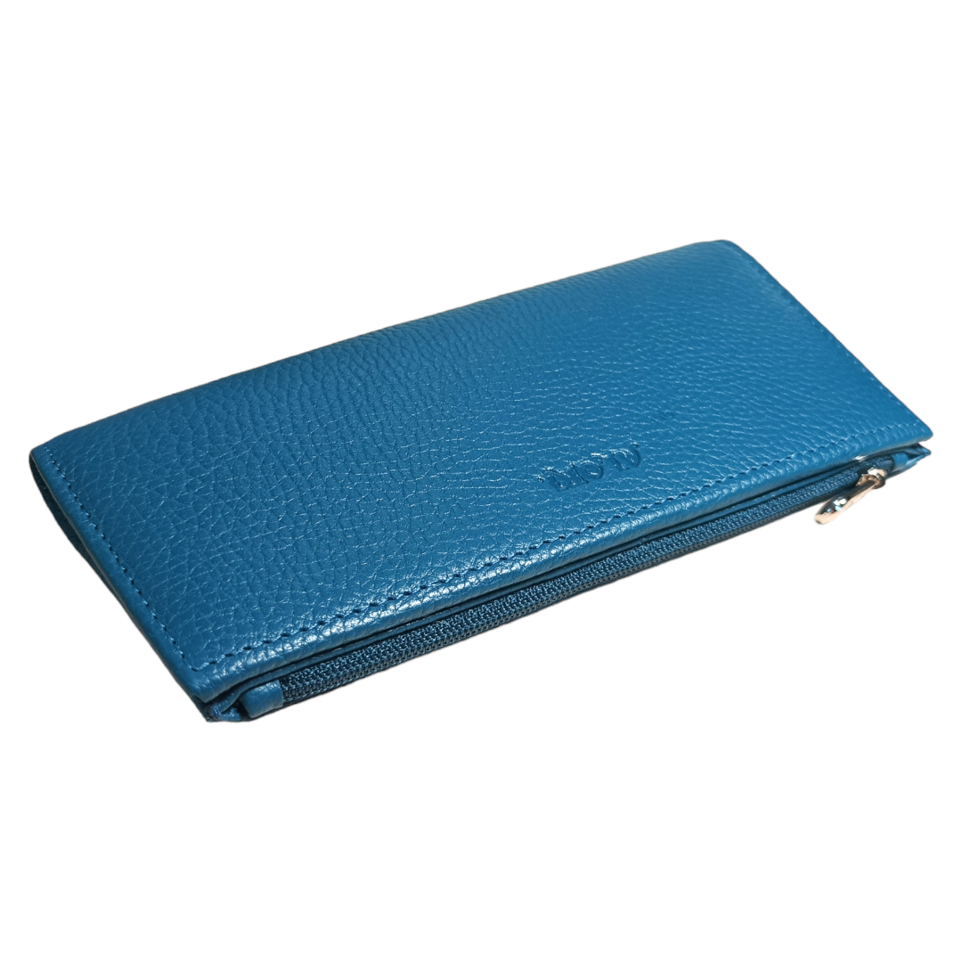 Гаманець виконаний із натуральної шкіри флотар кольору морської хвилі.
