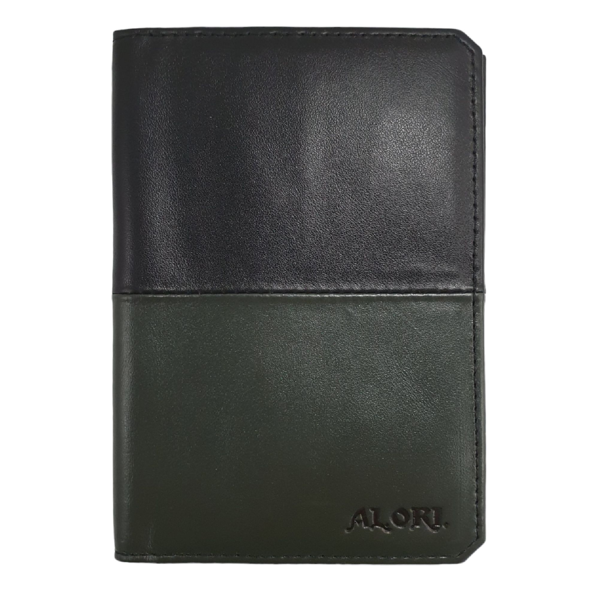 Обкладинка для паспорта чорно-зеленого кольору, натуральна гладка шкіра