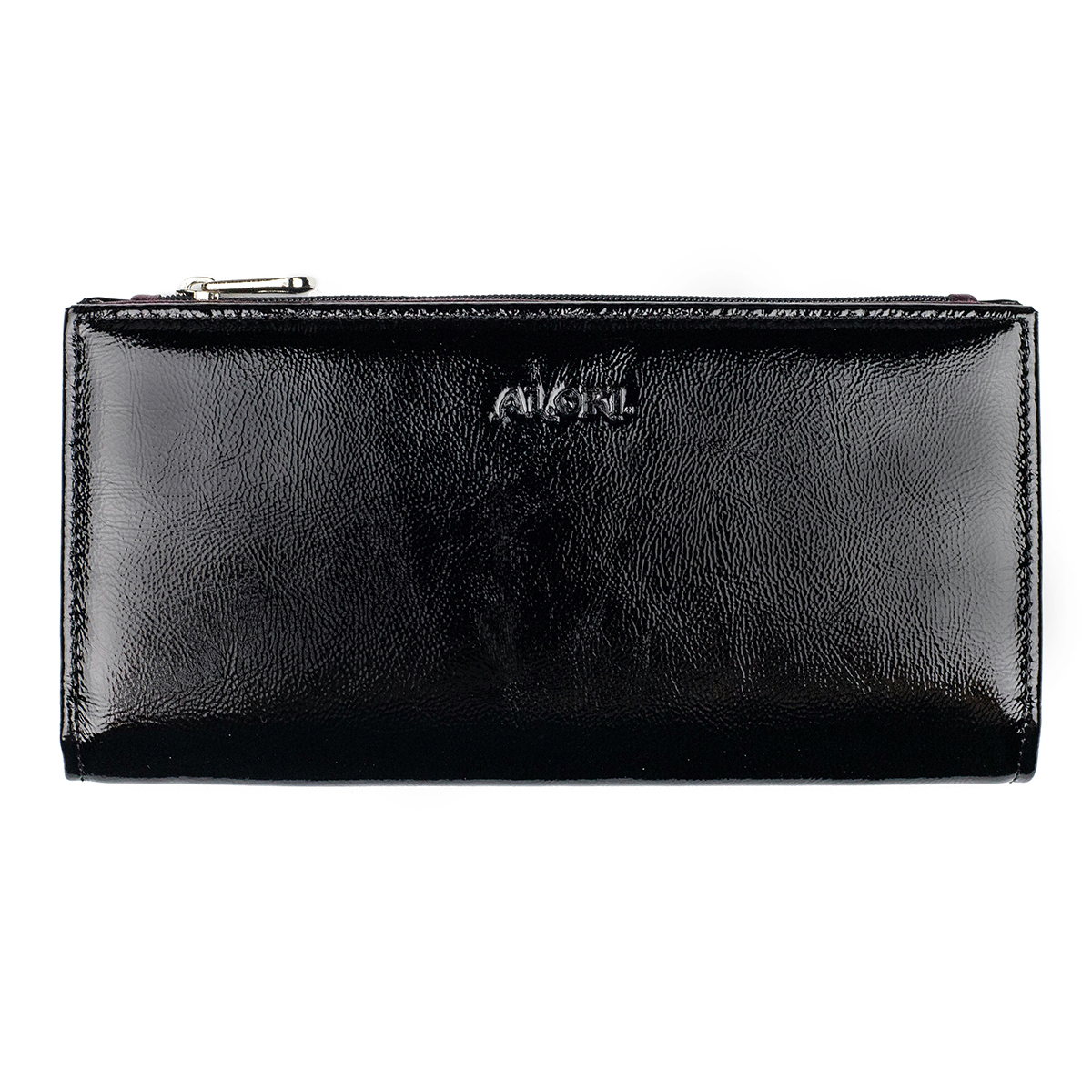 2 основних та 1 додатковий відділ для купюр у центрі на блискавці, 12 осередків для пластикових карток, зовні кишеня на блискавці для монет.